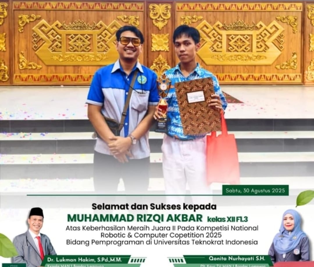 BANDAR LAMPUNG – Dibawa kendali kepala Madrasah MAN 1 Bandar Lampung DR.Lukman Hakim SP.d. MM banyak meraih prestasi yang di banggakan.(31/8/25).