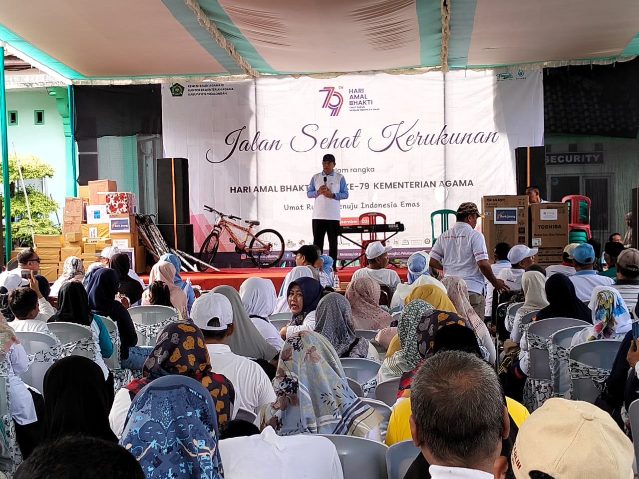 Pekalongan – Jawa Tengah – Dalam rangka memeriahkan Hari Amal Bhakti (HAB) ke-79, Kementerian Agama Kabupaten Pekalongan menggelar kegiatan Jalan Sehat Kerukunan yang sukses menarik antusiasme lebih dari lima ribu peserta. Acara yang berlangsung pada Selasa (31/12/2024) ini menjadi ajang kebersamaan dan perwujudan semangat kerukunan di tengah keberagaman masyarakat Kabupaten Pekalongan.