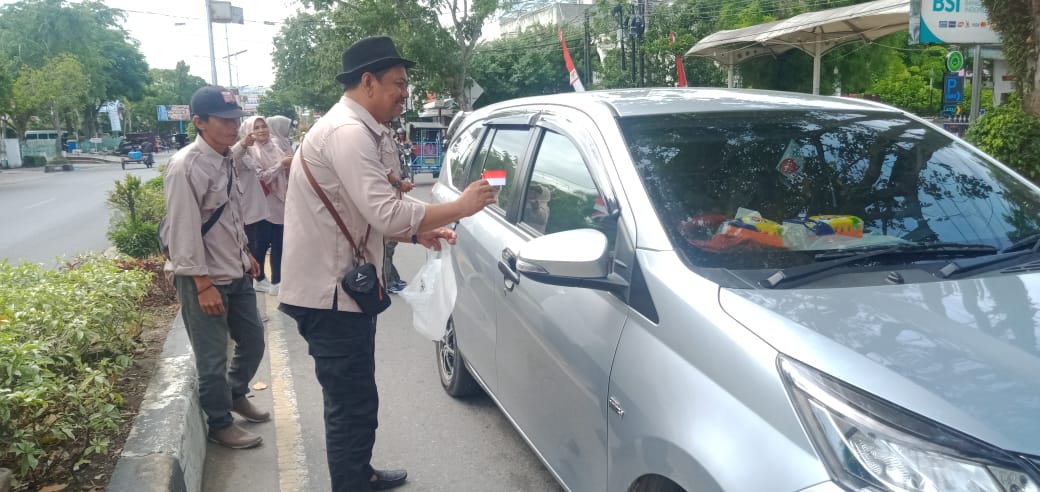 Langsa – Dalam rangka menyemarakkan Hari Ulang Tahun (HUT) Ke-79 Republik Indonesia (RI), Persatuan Wartawan kota Langsa (PERWAL), Provinsi Aceh membagi-bagikan Bendera Merah Putih kepada pengendara yang melintas di perempatan Lampu Merah, Jalan Jenderal Ahmad Yani atau di Depan RSUD Kota Langsa dan Mesjid Raya Darul Falah.