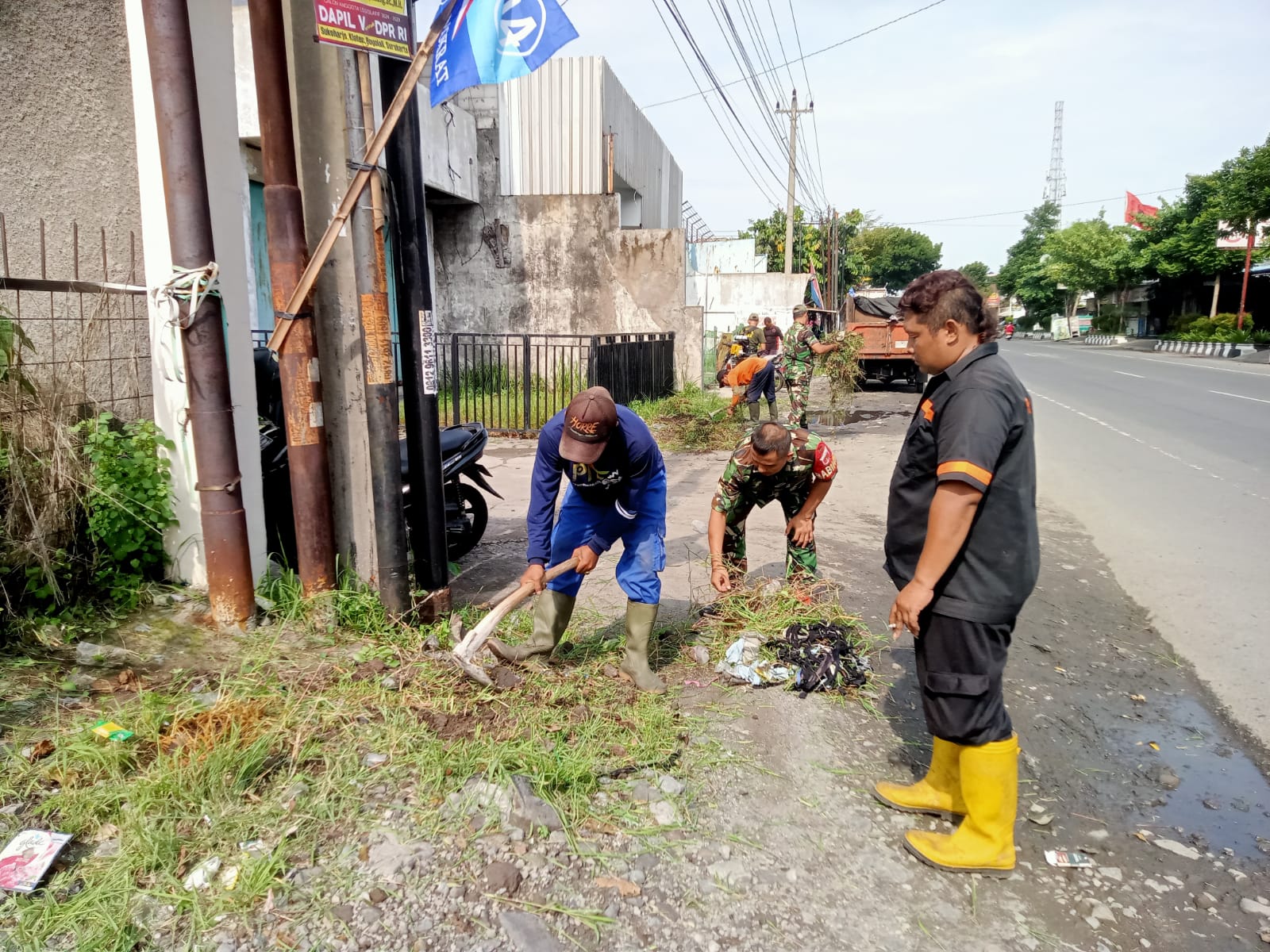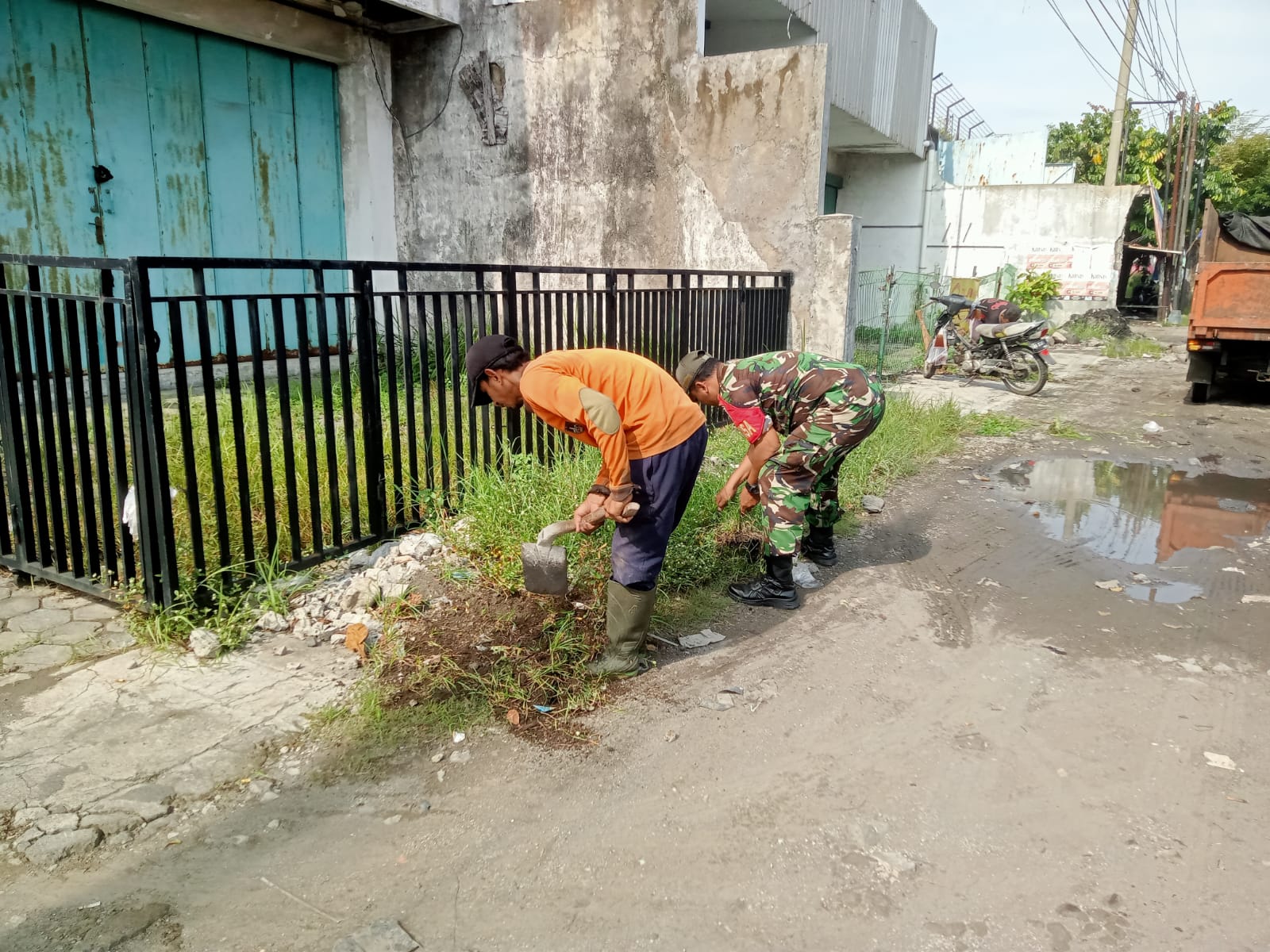 Surakarta, Jawa Tengah – Babinsa Kelurahan Banyuanyar, Sertu Yudha, dan Serda Daryono bersama Tim Satuan Kebersihan Lingkungan (Saberling) Kelurahan Banyuanyar, melaksanakan kegiatan pembersihan di sepanjang Jl. Adi Sumarmo, Kelurahan Banyuanyar, Kecamatan Banjarsari, pada Rabu (17/01/2024).