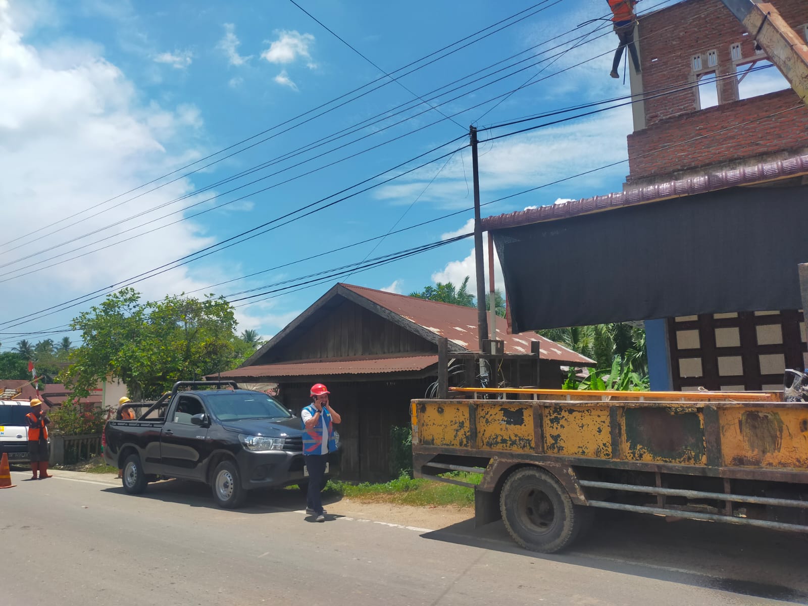 ACEH TIMUR – Minggu, 23 Agustus 2025 Menejer PLN Iwan syahputra melalui K3 Muhammad Hariadi syahputra langsung terjun kelapangan di desa Meunasah tunong untuk menggeser kabel SU.2 dan SU.3 sebayak tiga tiang dan di protektif slevee ( dibalut ) kabelnya yang dekat bangunan.