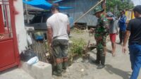 Babinsa dan Warga Bergotong Royong Bersihkan Saluran Air