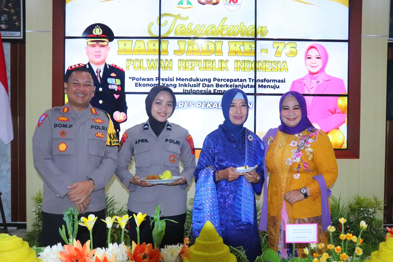 PEKALONGAN – Jawa Tengah — Polres Pekalongan – Polda Jateng – Memperingati hari jadi Polwan ke-76, Polres Pekalongan menggelar tasyakuran yang dilaksanakan di aula Mapolres, Jumat (06/09). Kegiatan yang digelar secara sederhana tersebut dihadiri oleh Kapolres Pekalongan AKBP Doni Prakoso Widamanto, S.I.K beserta Ketua Bhayangkari cabang Pekalongan Ny. Dika Doni Prakoso, PJU Polres Pekalongan, para Kasat, Kapolsek jajaran, Perwira Polres, pengurus Bhayangkari serta seluruh anggota Polwan Polres Pekalongan.