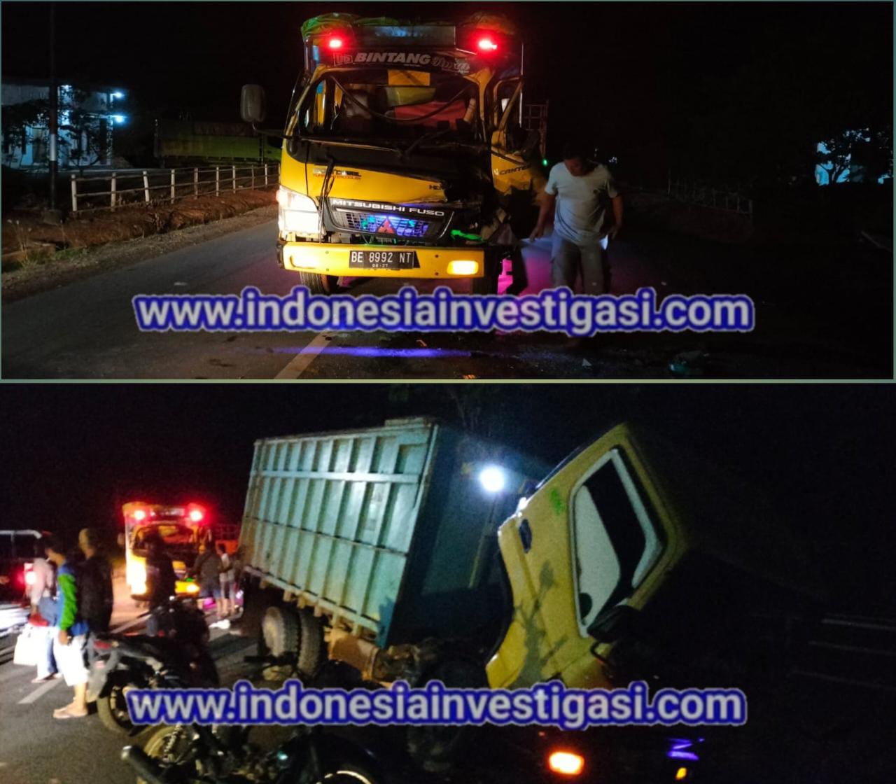 Menurut Informasi Dari Masyarakat Setempat Kejadian Bermula Dari Sebuah Mobil Truk Yang Rusak Dibahu Jalan Dan Sedang Diperbaiki Oleh Supirnya Dibagian kolong mobilnya..Dan Dari Arah Belakang Ditabrak Mobil Truk Dari arahbelakang .