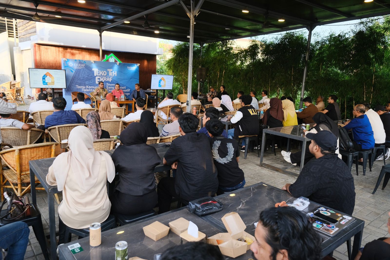 Turut mendampingi Menteri Ekraf, yaitu Staf Khusus Menteri Bidang Isu Strategis dan Antarlembaga, Rian Syaf; Kepala Pusat Pengembangan SDM Ekraf, Siamwahyuni; dan Tenaga Ahli Menteri, Panji Purboyo. Hadir pula Bupati Aceh Tengah, Haili Yoga; Bupati Aceh Barat, Tarmizi; Pemimpin Redaksi Serambi Indonesia, Zainal Arifin M. Nur; beserta 53 pegiat ekraf Aceh lainnya.