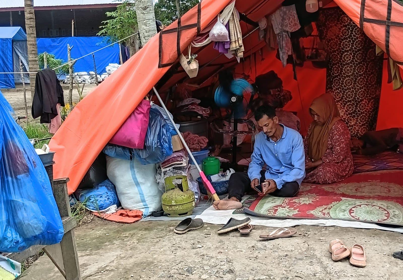 Keluhan serupa disampaikan Jamilah (60), seorang janda warga Desa Kapa yang juga masih tinggal di tenda darurat. Dengan mata berkaca-kaca, ia berharap pemerintah segera membangun Huntara agar mereka tidak berlama-lama hidup tanpa kepastian.