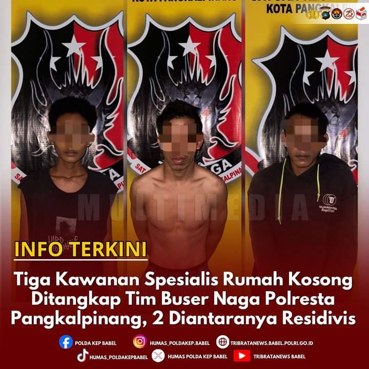 Tiga Kawanan Spesialis Rumah Kosong Ditangkap Tim Buser Naga Polresta Pangkalpinang, 2 Diantaranya Residivis