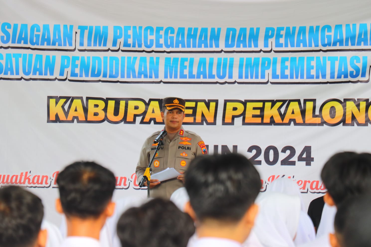 Dalam sambutannya selaku pimpinan apel, Kapolres Pekalongan AKBP Wahyu Rohadi menyampaikan bahwa pencegahan dan penanganan kekerasan di lingkungan satuan pendidikan merupakan bagian dari episode merdeka belajar.