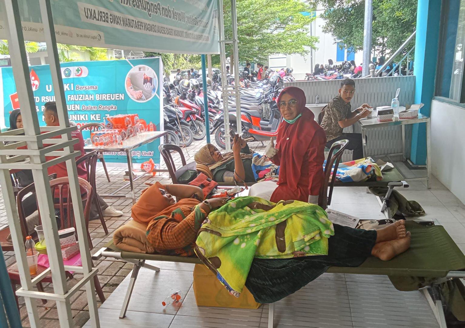 BIREUEN – Universitas Islam Kebangsaan Indonesia (UNIKI) Bireuen bekerja sama dengan UTD RSUD dr. Fauziah dan PMI Bireuen menggelar kegiatan donor darah dalam rangka Milad ke-7 UNIKI, Senin (19/5/2025). Aksi kemanusiaan yang berlangsung di depan Business Centre (BC) UNIKI itu berhasil mengumpulkan 42 kantong darah.