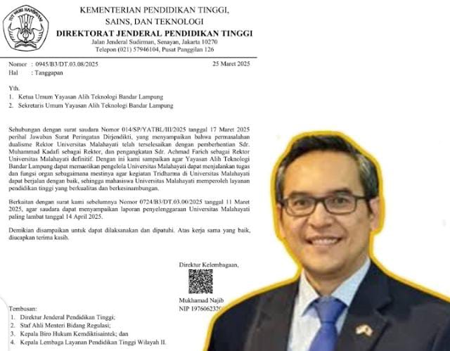 Lebih jauh, surat yang ditandatangani oleh Direktur Kelembagaan Ditjen Dikti itu juga memunculkan dugaan adanya wanprestatie dalam menjalankan tugas dan fungsinya. Surat tersebut justru memicu keresahan di lingkungan kampus dan masyarakat akademik, bahkan muncul rencana aksi massa yang akan digelar dalam waktu dekat untuk mendesak pencopotan Direktur Kelembagaan tersebut. Massa menilai langkah yang diambil tidak hanya melampaui kewenangan, tetapi juga berpotensi memperburuk konflik internal yang ada.