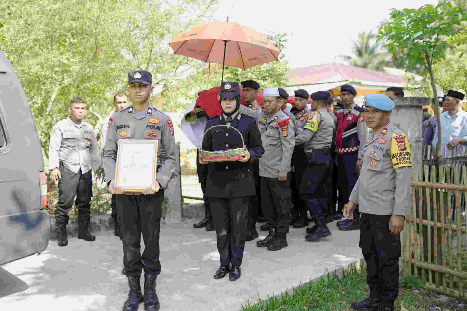 Sigli, Aceh – Berikan penghormatan terakhir, Kapolres Pidie, AKBP Imam Asfali, SIK, MH pimpin upacara pemakaman personel polres setempat meninggal dunia, Rabu malam, 13 Maret 2024.