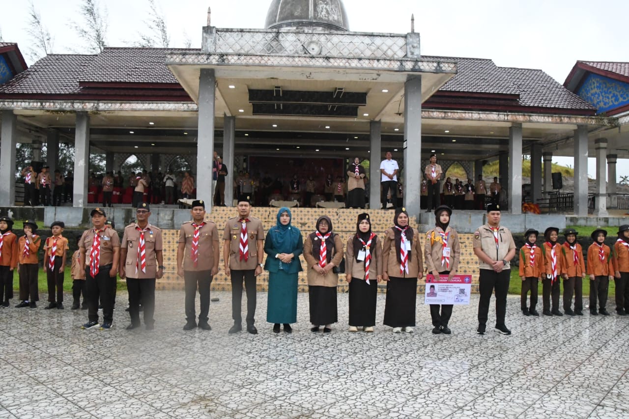 ACEH TIMUR– Langit Pusat Pemerintahan Aceh Timur tampak kelabu. Awan bergerak berat, seolah tak ingin menunda turunnya hujan. Namun Lapangan Upacara tetap ramai dipenuhi semangat ratusan pramuka dari berbagai penjuru Aceh Timur.