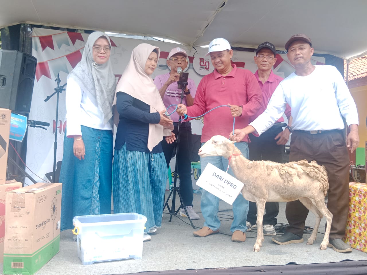 Dalam kesempatan itu, ia juga memberikan hadiah doorprize yang cukup unik, yaitu seekor kambing putih.