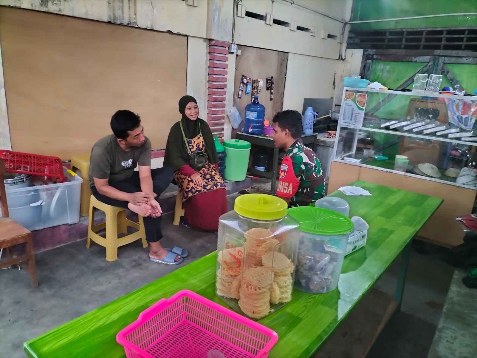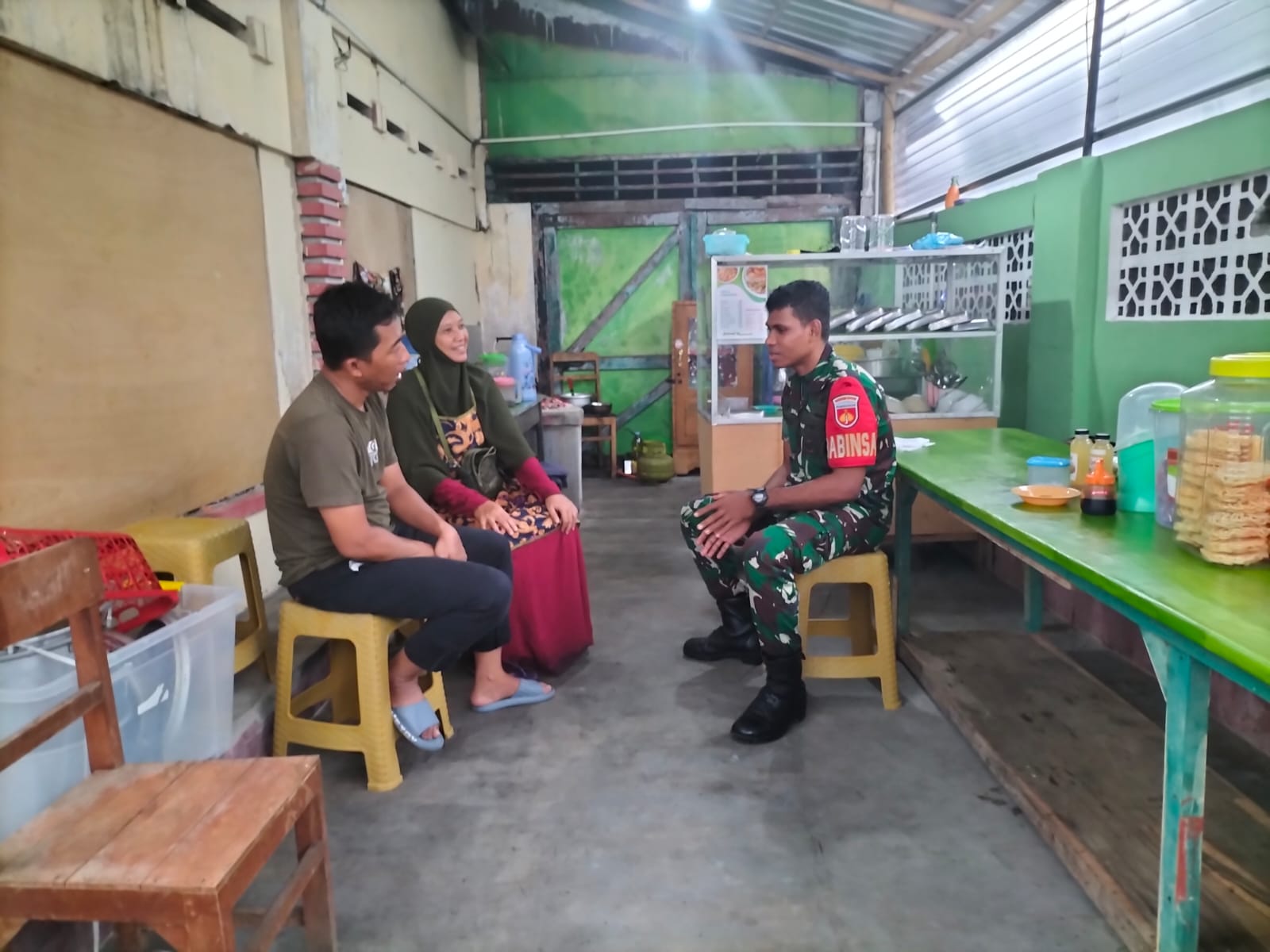 Seperti yang dilakukan oleh Babinsa Kelurahan Sriwedari Koramil 01 Laweyan Kodim Surakarta, Serda Fredo, dalam menjalin rasa keakraban serta kebersamaan yang baik dengan warga binaan di salah satu warung makan, Barokah, di Jalan Bolodewo, Kp. Kebonan, Kelurahan Sriwedari, pada Selasa (13/02/2024).