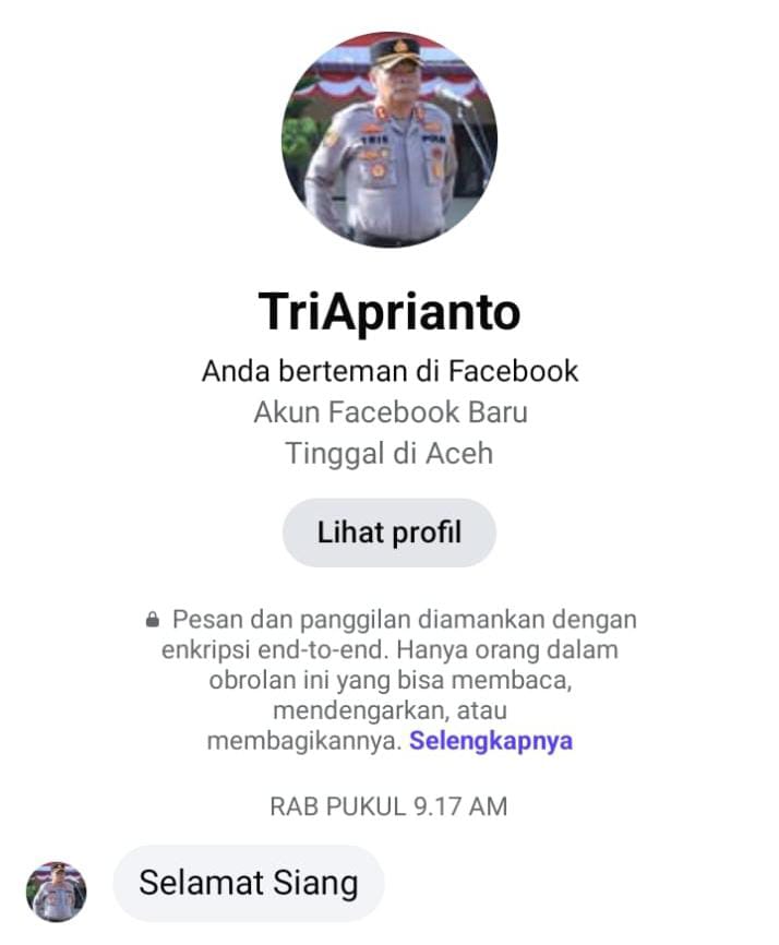 Kapolres Aceh Utara, AKBP Trie Aprianto, menegaskan bahwa akun tersebut bukan miliknya dan merupakan aksi penipuan yang memanfaatkan nama serta jabatan untuk meyakinkan korban.