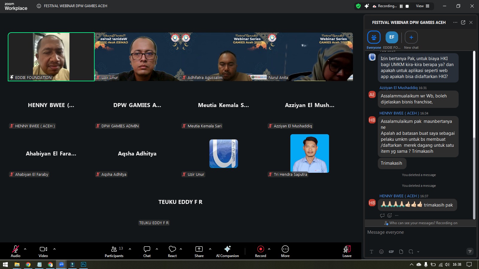 Menjawab tantangan tersebut, DPW GAMIES Provinsi Aceh kembali menggelar kegiatan edukatif dalam rangkaian Festival Ramadhan Webinar Series GAMIES Aceh 2026 dengan tema “Stop Dibajak! Saatnya UMKM Melek HKI.”