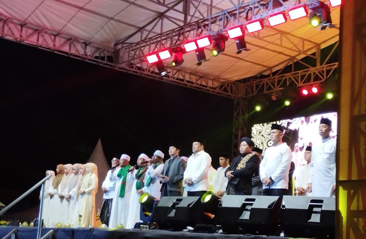 Suasana malam penuh khidmat, lantunan zikir menggema dari ribuan jamaah yang duduk beralas tikar di pelataran RTH Cot Gapu. Lampu-lampu panggung yang lembut menambah nuansa religius di tengah semilir angin malam.
